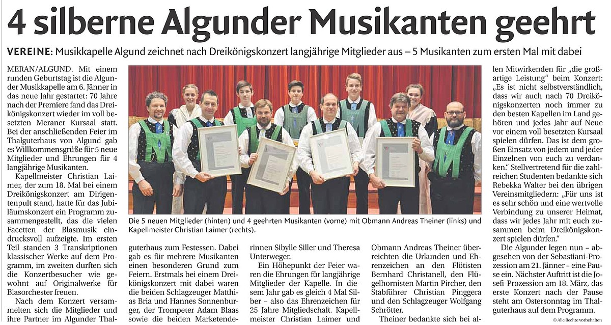 - 09.01.25 - Dolomiten – Ehrungen nach Dreikönigskonzert
